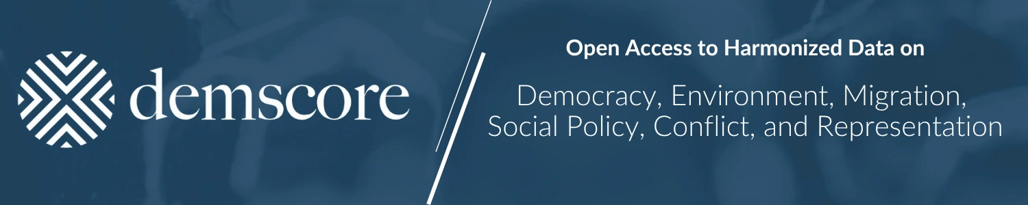 Demscore is a collaborative infrastructure involving several of the world’s most prominent social science research institutes, including V-Dem, UCDP/VIEWS, QoG, COMPLAB, REPDEM, and H-DATA. Demscore addresses the problems of inconsistency and incompatibility between social science datasets through an innovative strategy and offers free, open-access, customized data merging and automated codebooks.